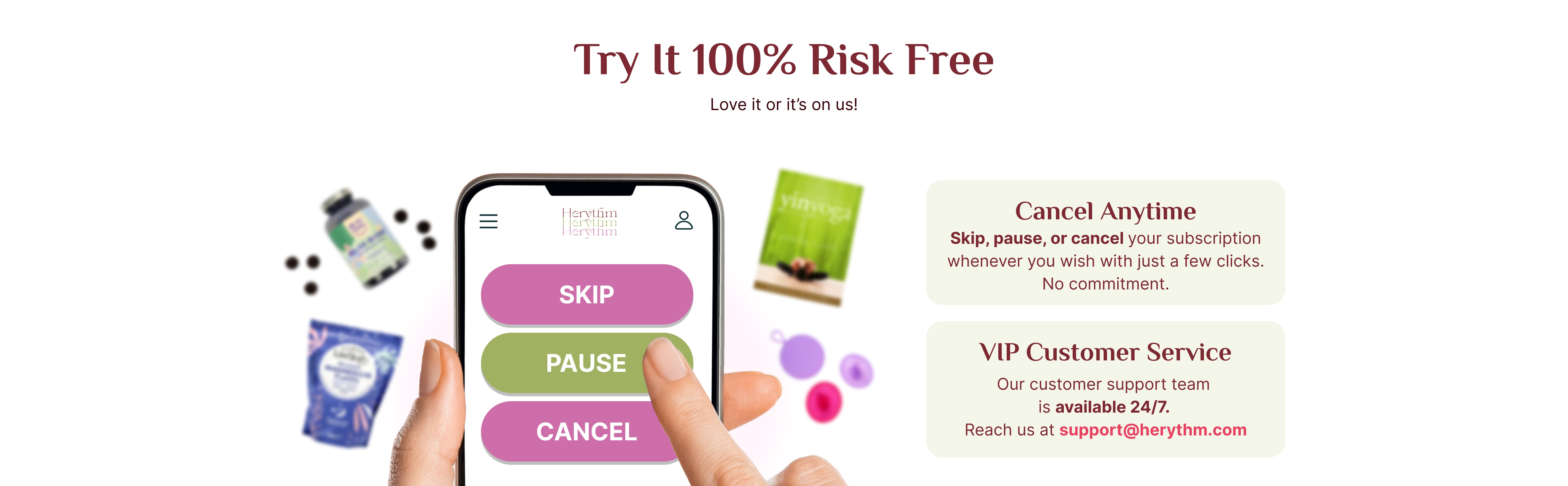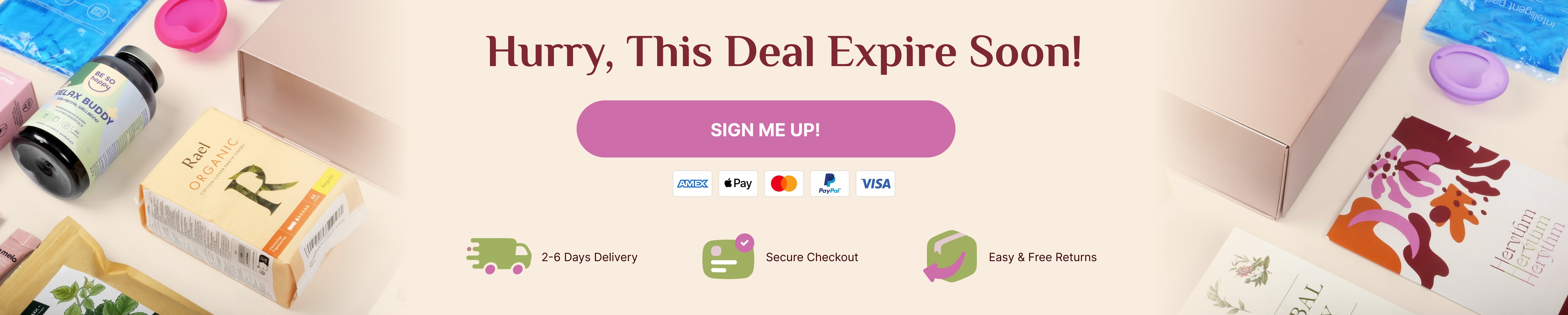 At Herythm, women’s health comes first. Our box supports you all month with products and guidance tailored to your needs. Here’s how we help: